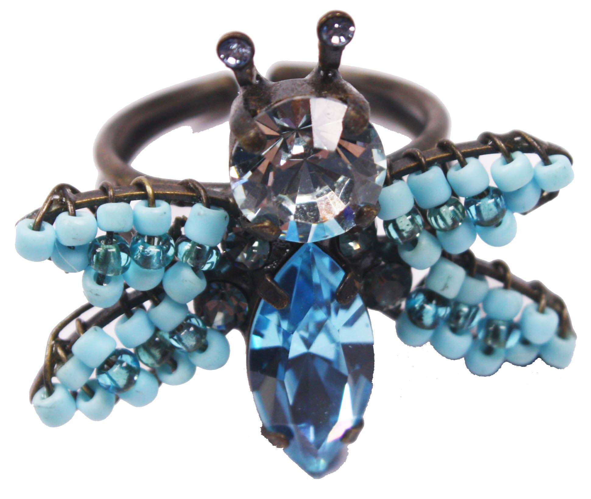 縦:2.4cm 横:3.1cm 石:0.8cm フリーサイズ 素材:真鍮、スワロフスキー、樹脂、ビーズ 蜂をモチーフにしたデザインのリングです。