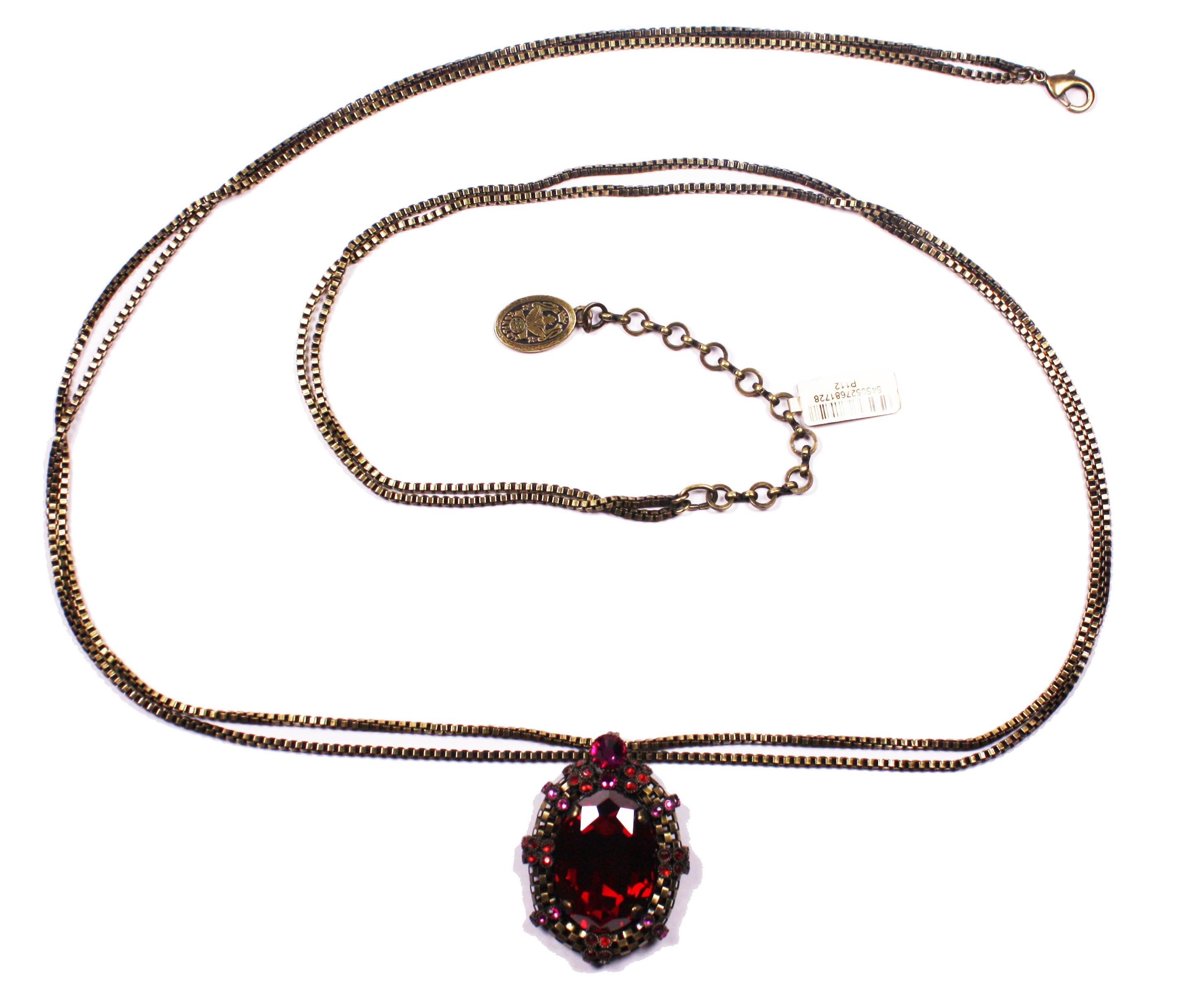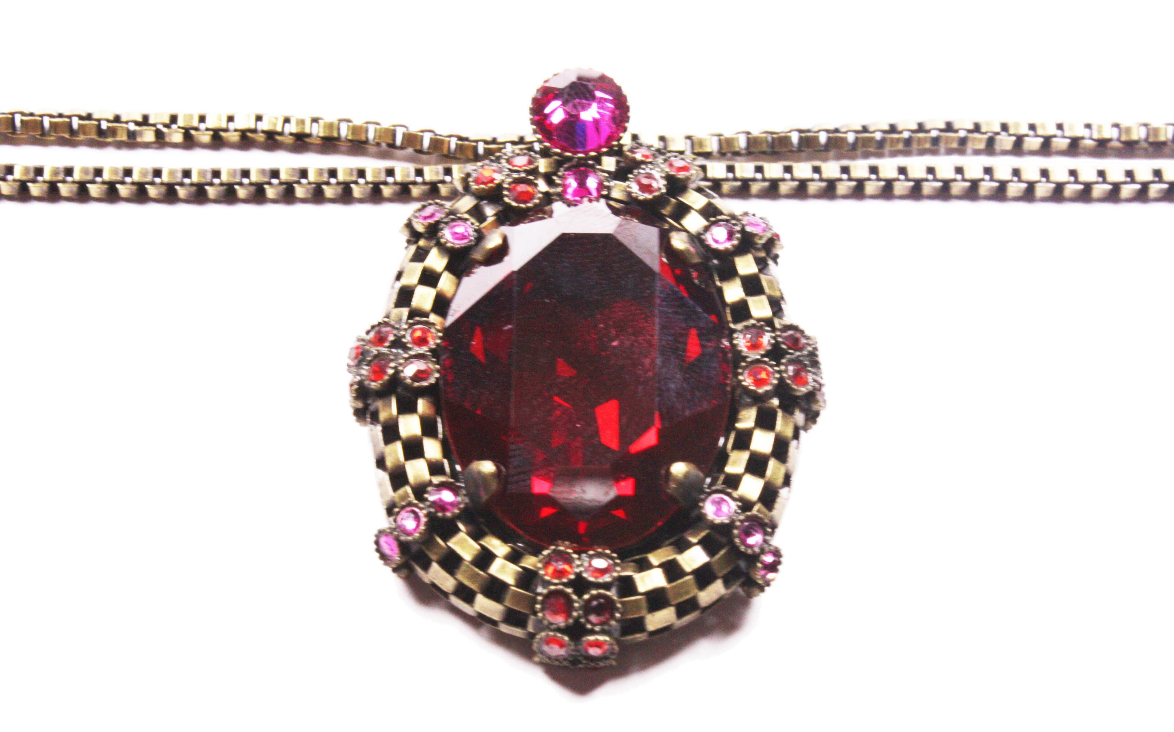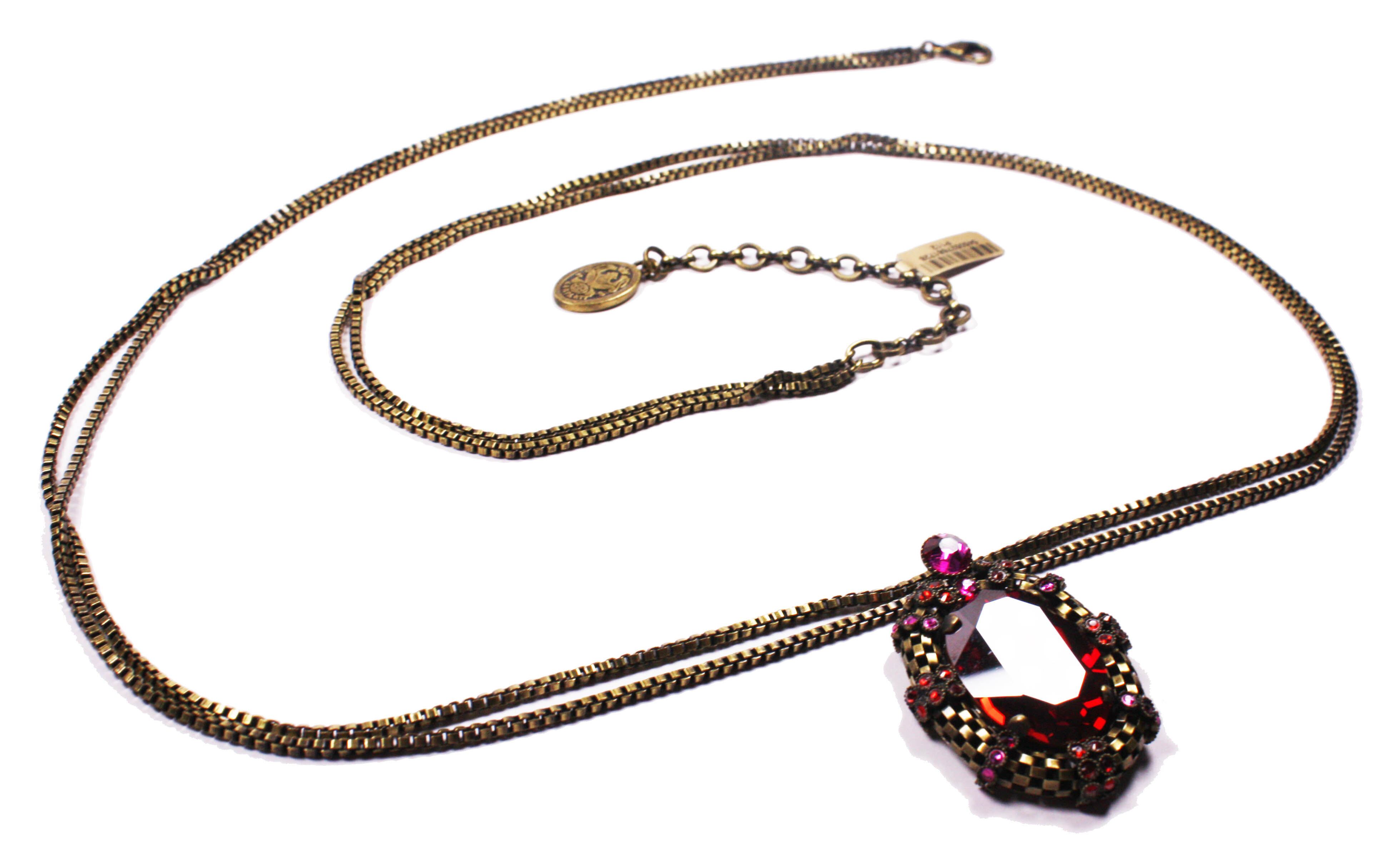 ルビー色のスワロフスキーが特徴のロングタイプネックレスです。